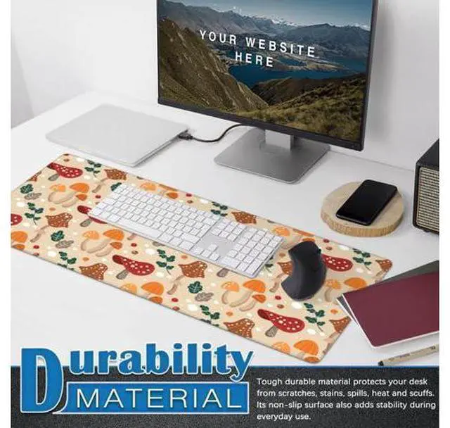 Mouse Pads,Mushroom Large Mouse Pad for Desk Non-Slip Rubber Base Mouse Pad with Stitched Edges,Keyboard Pad Mouse Mat for Computer,Work,Gaming,Desk Decor 31.5x15.7 in