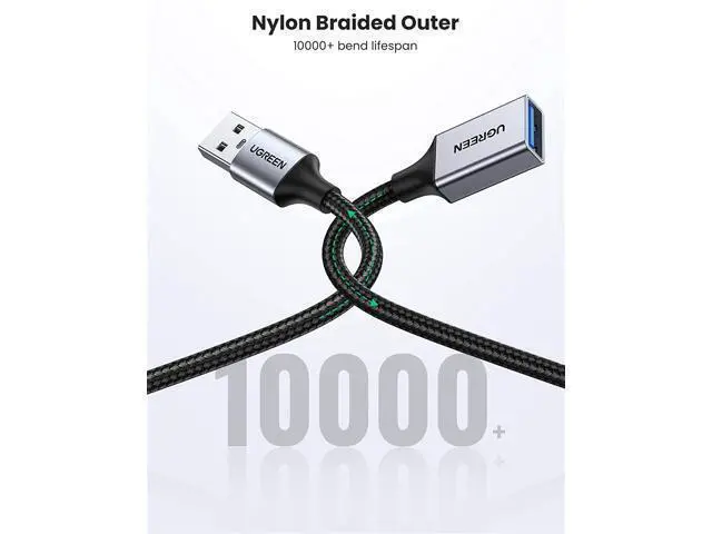 • More than extension: UGREEN USB 3.0 extension cable aims at extending the USB connection to your computer, extending to your desired distance.No need to squeeze yourself to the back of the TV or desktop to connect USB disk or other USB peripherals anymore. 5Gbps Superspeed Transfer: Built in powerful intelligent chip , the USB 3.0 extension cable can support data transfer rate up to 5Gbps Marvelous Durability and Flexibility: With stronger materials than ever before, the USB extension cable will meet all your needs. Nylon braided making it durable and tangle-free. Nickel-plated connectors make it stable and constant. Aluminum casing making it stand wear and tear, reinforced strain relief makes it stand over 10,000 bending. Broad Compatibility: The USB 3.0 extension cable can extend more USB connections such as Oculus Rift, Playstation, Xbox, printer, scanner, camera, USB keyboard, mouse, VR, and game controller to your computer with your desired distance. Plug and Play : No driver is