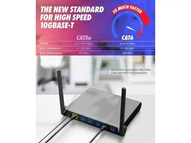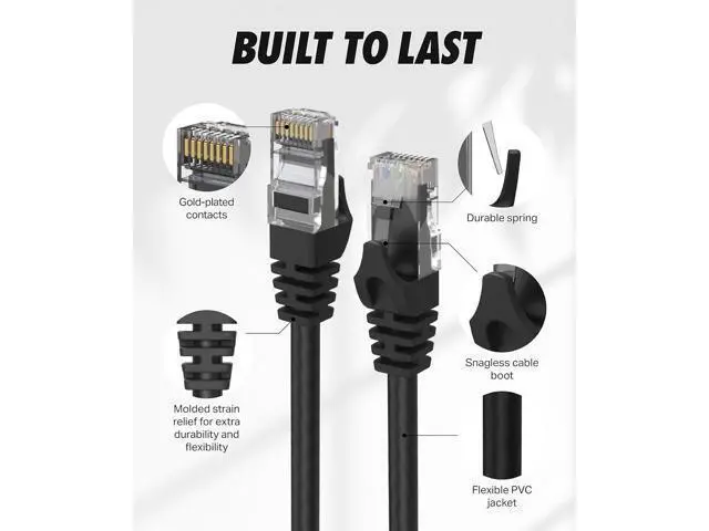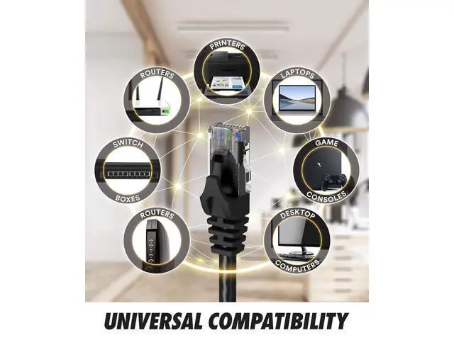 QUALITY CONTROL - Each Cat 6 internet cable 1 ft goes through rigorous testing to ensure a secure wired internet connection with exceptional speed and reliability. PERFORMANCE - High performance Cat6 ethernet patch cables are designed with extremely well-matched components for outstanding uniform impedance and very low return loss?? providing lower crosstalk?? and a higher signal-to-noise ratio. They support frequencies of up to 500 MHz and are suitable for high-speed 10GBASE-T internet connection for LAN network applications such as PCs?? servers?? printers?? routers?? switch boxes?? and more?? while remaining fully backward compatible with your existing network.