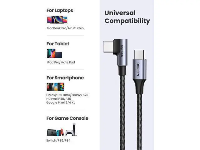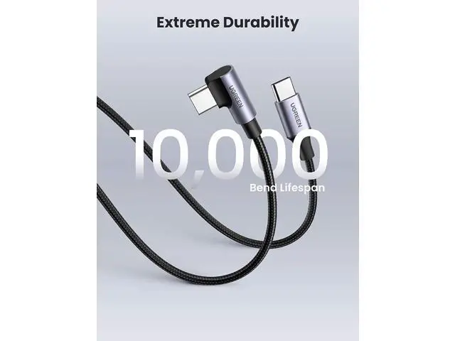 Durability and Flexibilty: The USB C to USB C cable right angle is Nylon Braieded and features strain relief and metal connectors, which can withstand over 10000 bending. It can also protect your cable from fraying, making it durable. It is also tangle-free and flexible
