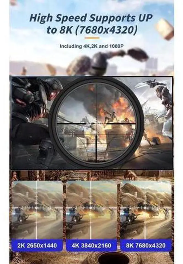 Gaming Enthusiasts: The 8K display port 2.1 cable features an unprecedented bandwidth of 40Gbps, nearly 3 times faster than the prior DP 1.2 spec. This ensures stable, high-speed data transmission without signal loss. It supports gaming essentials such as FreeSync and G-Sync. Immerse yourself in thrilling multi-screen gaming with MTS, while Variable Refresh Rate (VRR) and Auto Low Latency Mode (ALLM) make your gaming smoother than ever, especially in FPS, 3A, and MOBA games