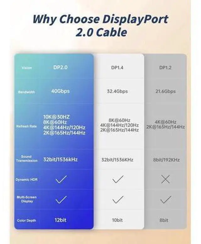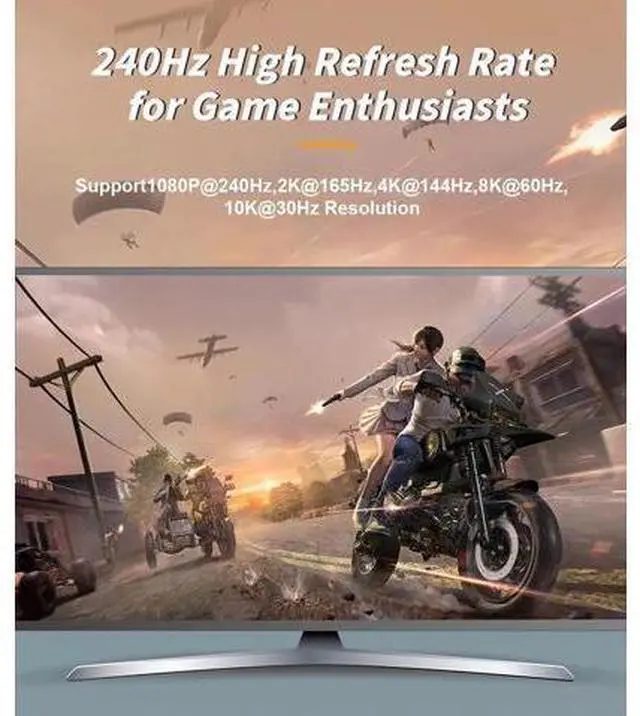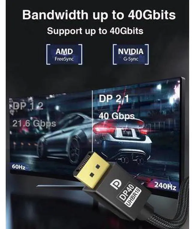 DisplayPort Cable 2.1: 8K DP to DP 2.1 cable is officially certified by VESA for exceptional quality. The DP 2.1 Cable supports high resolutions like 8K@60Hz, 4K@144Hz, backward compatible with 2K@240Hz and more. This is the only Display Port cable you'll need for the next decade. It's also backward compatible with DisplayPort 2.0, 1.4, 1.3, and 1.2.