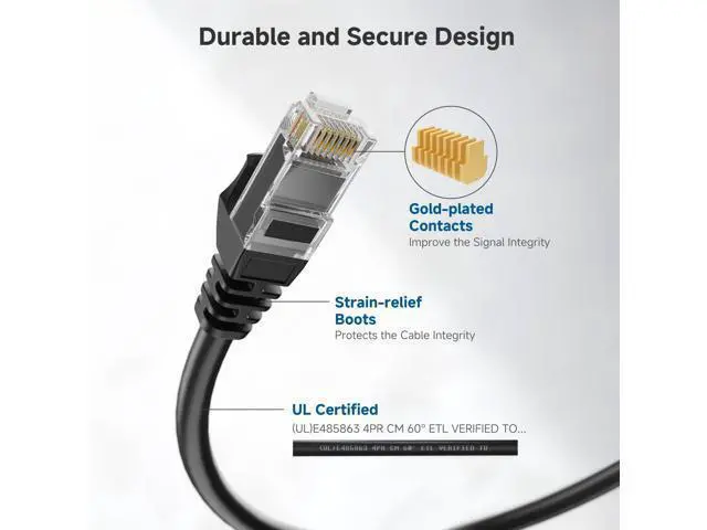 • Durable and Secure Design: The connectors of this ethernet cable feature gold-plated contacts an