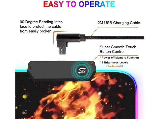 ??????? RGB Glowing Mouse Pad Bring You A Better Game Experience??? Instructions for use??? Please connect directly to the USB port of a desktop computer or laptop?? Open/ Click?? Close/ Long press the switch for 3 seconds?? Switch the light mode / Click Switch??? 12 lighting Modes? 9 Static Color / 2 Breathing Mode / Rainbow Mode??? One Control Butootn? Plug and Play, No Need Install Any Driver??? Power Off Memory and Separate Usb Cable Design???? Designed With Super-Fine Fiber Braided Material???? Micro Textured Cloth Smooth Surface Optimize Your Gaming Experience???? 0.16 inch Extra Thicken Ensures Your Wrist'S Comfort???? Durable Wrap-around Stitched Edges???? Non-Slip Rubber Base? To Ensure Precise, Accurate Mouse Control And Firmly Grip The Desktop During Gaming.