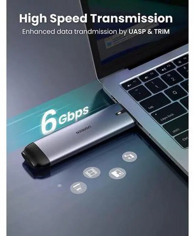 6Gbps Ultra-Fast Transmission: With USB 3.1 Gen2, M. 2 SATA III and UASP (USB Attached SCSI Protocol) ready, this enclosure delivers 6Gbps ultra-fast data transmission rate and performs faster than traditional USB 2.0 devices, no more waiting time. The advanced ASM235 chipset ensures the data transmission rate and safety to your SSD and valuable data.