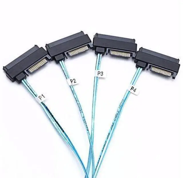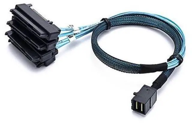 Color: black & Blue. Description Internal Mini SFF-8643 to (4) 29pin SFF-8482 connectors with power connecting a controller (SFF-8643) to four SATA/ disks (SFF-8482) Please note that Mini (SFF-8643) is host, 4 29 (SFF-8482) is target, internal Mini Serial Attached SCSI x4 (SFF-8643) to (4) x1 (SFF-8482) Serial Attached SCSI (controller based) fan-out cables Before you buy this cable, Please make sure the Mini (SFF-8643) on your motherboard or RAID controller. If the Mini (SFF-8643) on your backplane, this cable will not work with them Mini (SFF-8643) connect to the controller, 4 connect to the HDD (hard disc driver) Applications Data/Communications 1. RAID (Redundant Array of Independent Disks ) 2. Workstations 3. Rack-mount server 4. Servers 5. Storage rack Features and Benefits 1. Transmission rate 12 Gbps.