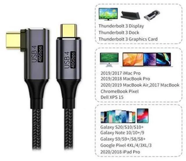 4) Wide Compatibility: This USB4 Type-C Cable is widely compatible with Most of USB-C Devices (Mainly Laptops), Such as Mac Pro 2020, 2019, 2018, XPS, Chrome Book and other DP Alternated Mode Supported Devices, backward compatible with Thunderbolt3, You can also connect with Hard Drivers and Docking Stations for Data.