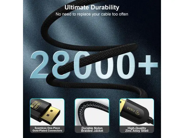 [(40Gbps Display Port Cable 2.1)] FIBBR display port to display port cable is VESA certified, and backward compatible with Display Port 2.0/1.4/1.3/1.2. Displayport 2.1 cable support transmission speeds of up to 40Gbps bandwidth for stable, high-speed transmission without signal loss.
