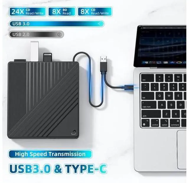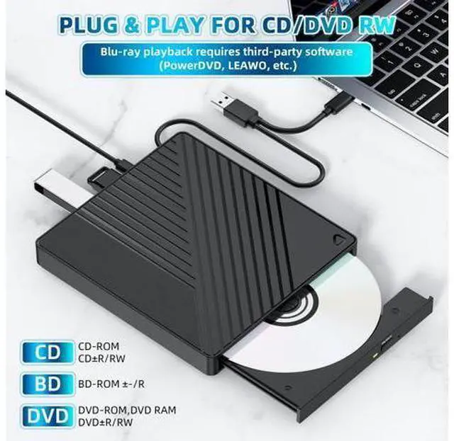 Plug-and-Play Simplicity Driver-free setup for CDs/DVDs via USB 3.0/Type-C. Blu-ray playback requires third-party software (PowerDVD, LEAWO, etc.)