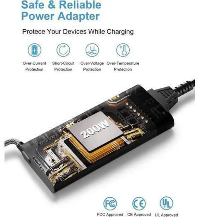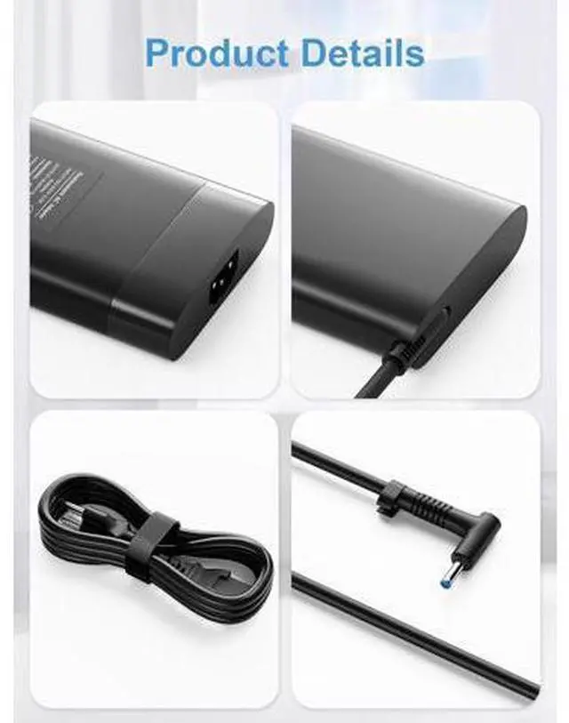 Input: 100 ~ 240V 50 ~ 60 Hz, Connector: 4.5 mm x 3.0 mm Blue Tip, please check your laptop specifications before buy it. Compatible HP Victus 15 16 15l i7, OMEN 15 15t, OMEN 17 17t, Pavilion 15 16 17 Gaming Laptop, ZBook 15 17 G3 G4 G5 G6 G7, Envy 15 2020, ZBook Studio G3 G4 G5 G6 G7 G8, ZBook Fury G7 G8, ZBook 15u G3 G4 Series 15-dc1xxx 15-ax033dx 17-w033dx 15-dc0096nr 15-ce018dx 17t-cb100 15-ek0013dx 15-ek0023dx 17-100an 16-a0xxx 15-ec1xxx 15-ec0xxx 16-a0045nr 15 dk1xxx 15-cx0xxx 15dk1035hr 16-a0032dx 15z-ec200 Charger. Compatible With P/NTPN-DA10 TPN-LA21 TPN-CA03 HP Spare L74881-001 L00818-850 L00895-003 L73385-001 ADP-200HB B W2F75AA PA-1201-08HT 677764-002 608431-002 815680-002 835888-001 A200A008l. Safety200W Laptop Charger port output up to 200W power delivery enables fast and efficient charging of compatible devices; Certified by RoHS, CE & FCC, the charger safeguards your devices against current overload, overvoltage, short circuit and overheating. Manufactured with the highest quality materials and undergoes rigorous performance testing to keep your computer safe and fully charged with. Just rest assured of delegating the charging work to this reliable power adapter. WarrantyIf you have any questions about the charger, please contact us.