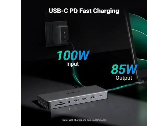 100W Power Delivery: The USB C Dock supports up to 85W USB-C pass-through charging via USB-C PD port, reserves 15W for other interface operation.