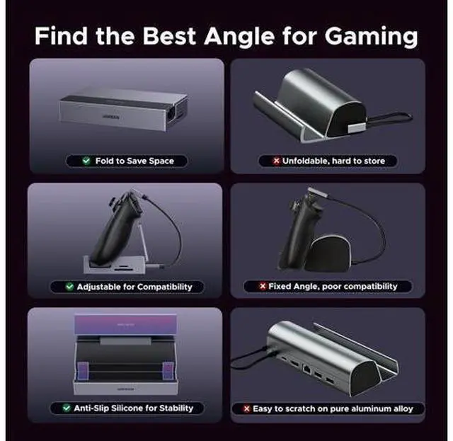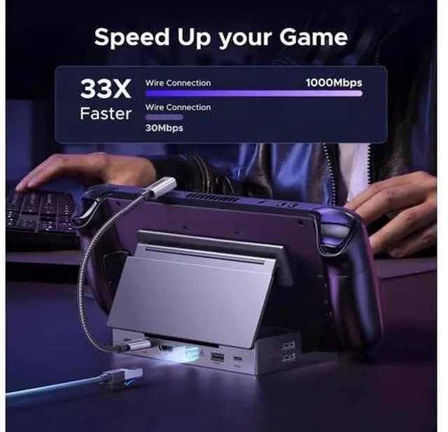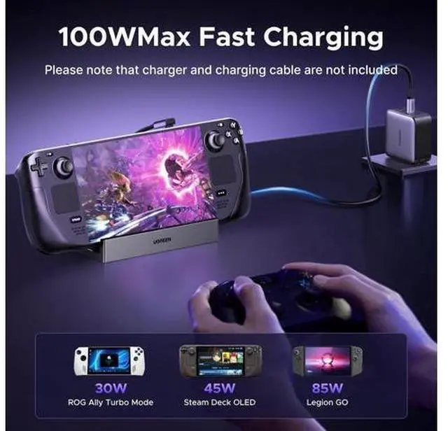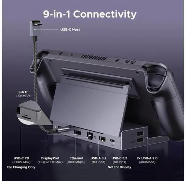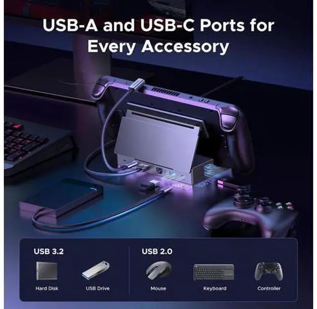Widely Compatible: This handheld gaming dock is widely compatible with gaming consoles such as Steam Deck, ROG Ally, ROG X, ROG Xbox Ally, LEGION Go and MSI Claw A1M. Also it is widely compatible with various USB-C devices to meet a variety of needs, like iPad Pro/Air, Surface Pro8 & Go 3.