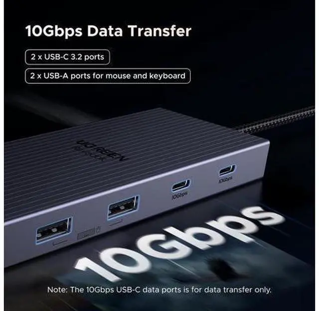 Ultra-Fast Data Transfer: This docking station delivers 10G data transfer speed via USB C, and the USB A ports allow you to connect Microphone/Keyboard/U disk for more efficient office work and smooth operation.