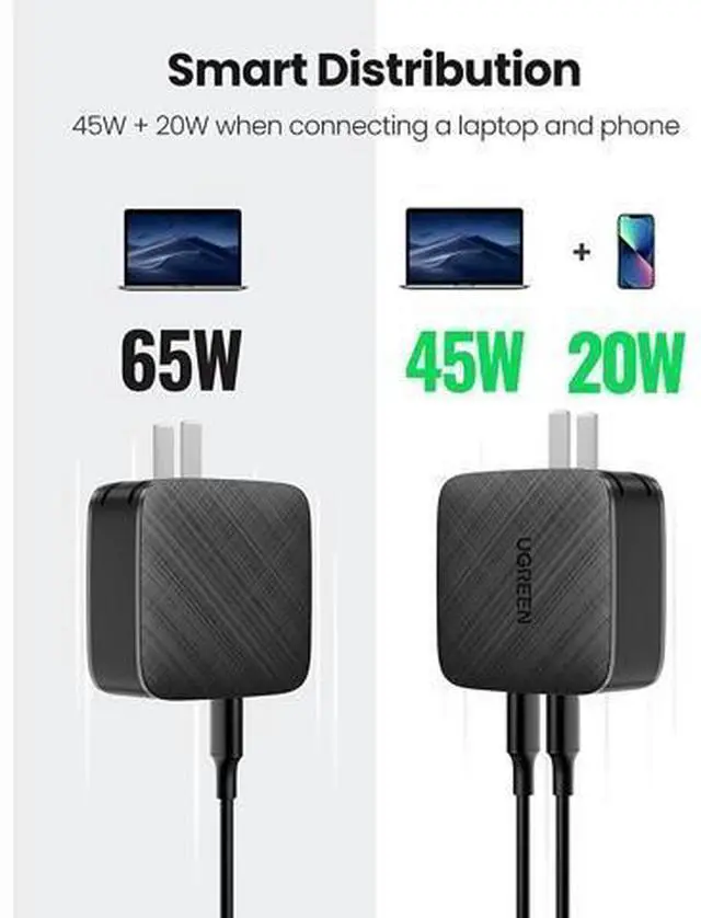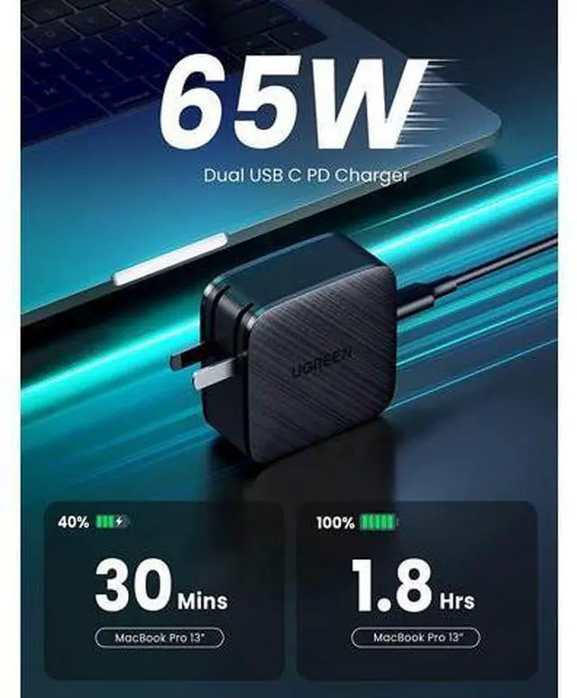 Max Output: USB C charger supports both Power Delivery 3.0, PPS, as well as Quick Charge 3.0 / 2.0, etc. With the 66 W powerful power, the MacBook Pro 13 inches in 1.8 hours. fully charged. It fits perfectly for most laptops, smartphones, switches, and other USB C devices.