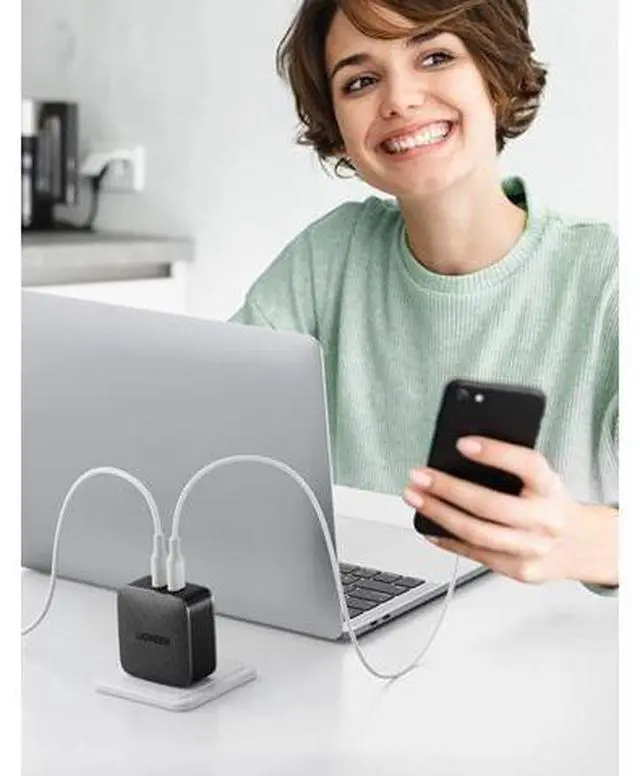 2-Port Fast Charger: Endows with dual USB-C ports, charging 2 devices simultaneously. The intelligent chip will auto-match with the optimal output for your devices.