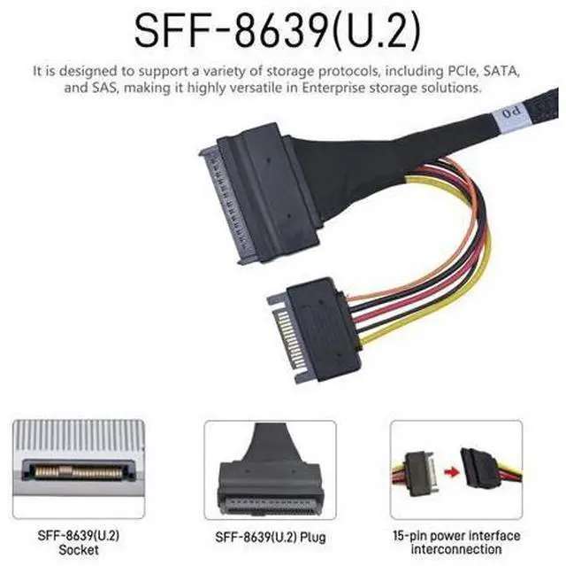 INTEGRATED POWER DELIVERY: Includes a 15Pin SATA Power Supply Cable for stable power delivery to U.2 NVMe SSDs, ensuring consistent performance and dependability