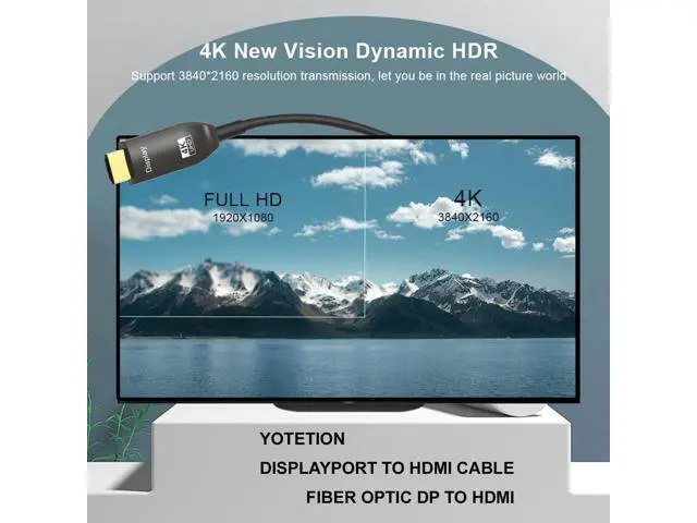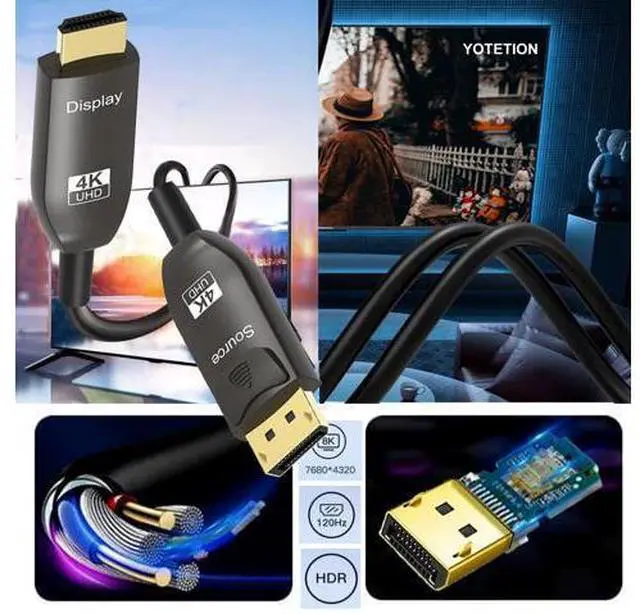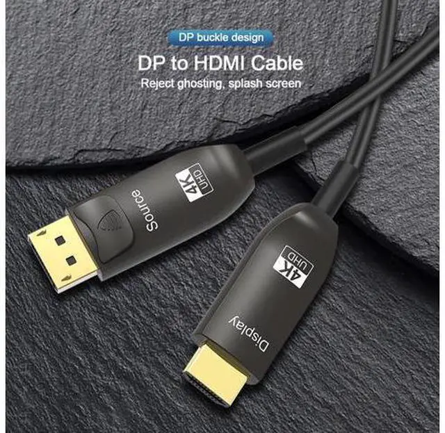 100FT Long DisplayPort to HDMI Cable Optical, 4K60HZ, Black, Aluminum, Optical DP to HDMI Cable, Compatible with MacBook Pro/Air, iMac, Microsoft Surface Pro/Dock, Monitor, Projector