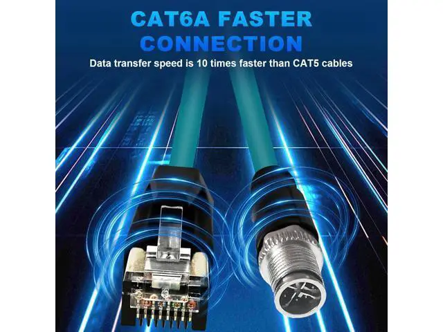 High performance signal transmission; Our M12 X Code 8 Pin Male to RJ45 Ethernet cable is designed with a twisted pair and double shielded construction, incorporating a pure copper wire core and high density tinned shield; This structure minimizes signal crosstalk, delivering more stable and faster data transmission, ensuring optimal performance for all your industrial network needs Sturdy and highly flexible PVC cover; The outer jacket of this industrial Ethernet cable is made of flexible PVC material; its resistance to stretch, oil, and abrasion makes it the ideal solution for harsh environments, while also ensuring longevity and reliability IP67 waterproof for harsh environments; Designed specifically for industrial applications, this M12 X Code 8 Pin Male to RJ45 Ethernet cable features an IP67 waterproof rating; It prevents liquid moisture and fine particles from penetrating the cable, making it ideal for use in harsh conditions and ensuring long-lasting performance in various industrial sectors Versatile for industrial applications; This M12 8 Pin X Code to RJ45 cable is suitable for a wide range of industrial Ethernet applications; It works seamlessly with industrial cameras, automation equipment, sensors, industrial robots, and more; It's also perfect for electronic processing, machine building, logistics, packaging, and other industrial automation systems This M12 X Code 8-pin male to RJ45 Ethernet CAT6A cable is constructed of high-quality materials, including pure copper gold-plated contacts and 26 AWG flexible conductors encased in a robust PVC jacket; its 360-degree all-around shielding provides excellent protection against EMI interference and ensures fast, reliable data transfer; Cable Length; 20M/ 65.6FT