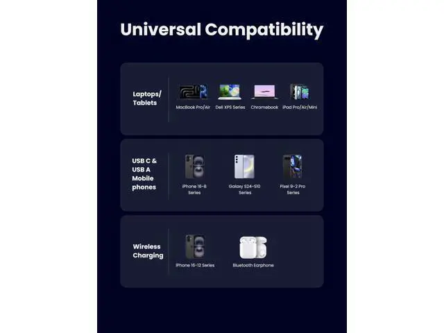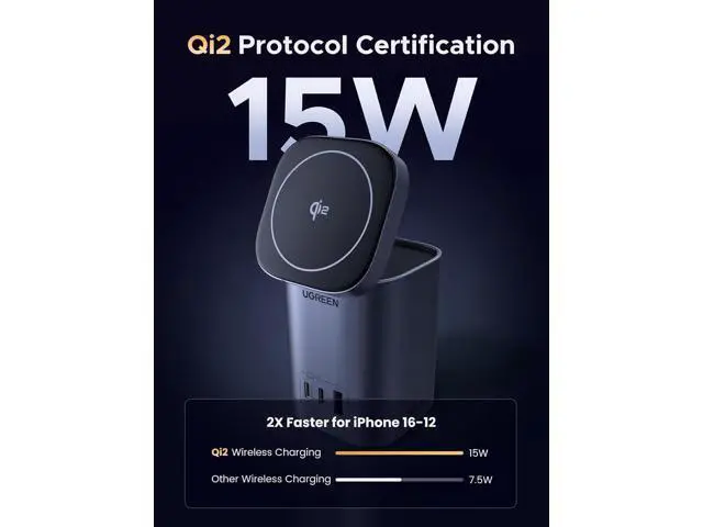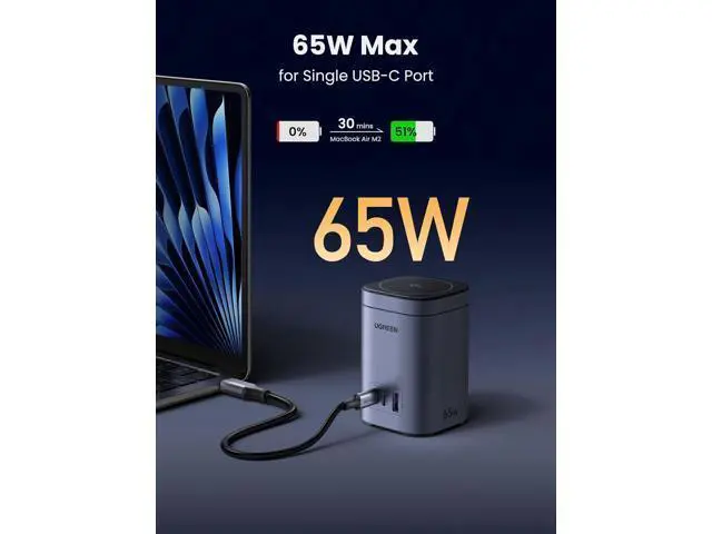Compatibility: This UGREEN Nexode 65W charging station with 15W wireless charging is compatible with a wide range of devices, including iPhone 16/15/14/13/12, Galaxy S24/S23, iPad Air, MacBook Pro and more