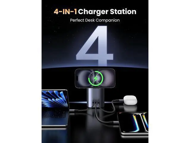 Charging Station: Offering a 15W Qi2 wireless charging stand as well as 2 USB-C ports and 1 USB-A port, this magsafe charging station is now possible to charge up to 4 devices at the same time, saving your space^^GaNFast