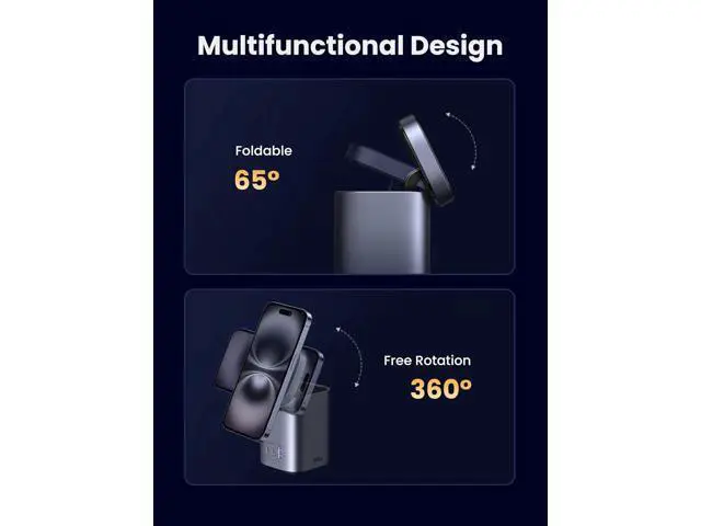 Fast Charging: This 3-port charging station delivers up to 65W of power using its USB-C port (when only one USB-C port is used), ensuring fast and efficient charging of high-demand devices like the MacBook Pro series and iPad Air series. It can charge a MacBook Air M2 from 0% to 51% in less than 30 minutes^^Foldable 15W Qi2