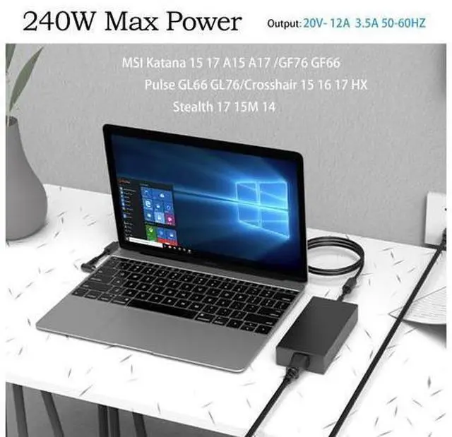 240W 12A Adapter fit for MSI Katana 15 17 b12v b13v b13vk b13vfk Katana GF76 GF66 Delta 15 A5EFK Sword/Crosshair 15 16 HX 17 Pulse GL76 GL66 MS-17K3 MS-14K1 A20-240P2A Gaming Laptop Charger ( 4.5X 3.0 )