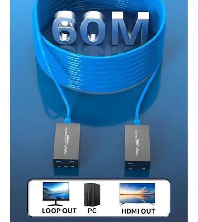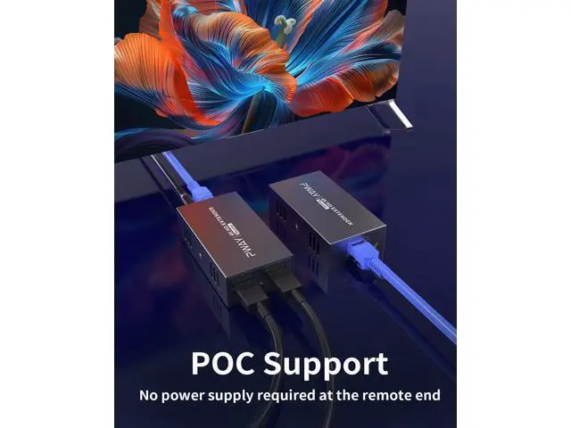 True 4K@60Hz 4:4: 4 with HDR 10Delivers uncompressed 4K Ultra HD resolution at 60Hz support for stunning picture quality from Blu-ray players, gaming consoles, and streaming devices. 200ft Long-DistanceExtend your HDMI signals up to 200ft (60m) using standard CAT5e/CAT6/CAT7 cables - perfect for home theaters, conference rooms, and professional AV installations. Loop-Out for Local MonitoringBuilt-in loop-out port allows real-time local monitoring while extending the signal - ideal for technicians and multi-display setups. POC FunctionPower Over Cable technology requires only transmitter-side power - eliminates the need for power outlets at the display end, ideal for ceiling projectors and digital signage. Includes1x HDMI Transmitter, 1x HDMI Receiver, 1x 12V1A DC Power Supply Adaptor, 1x Product Manual.