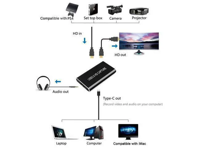 Features: Plug and play, no driver is needed. USB 3.0 Video Capture Card (HD to USB C video capture card with HD loop out), works great for you. Multi-compatible with most systems like Windows, Linux, OS X. The quality of the video it captures is great as it can capture at 1080p/60 Hz. Suitable for many occasions, you can use it to do live streaming or recording games.