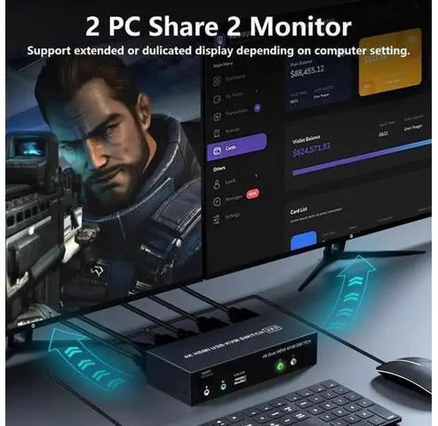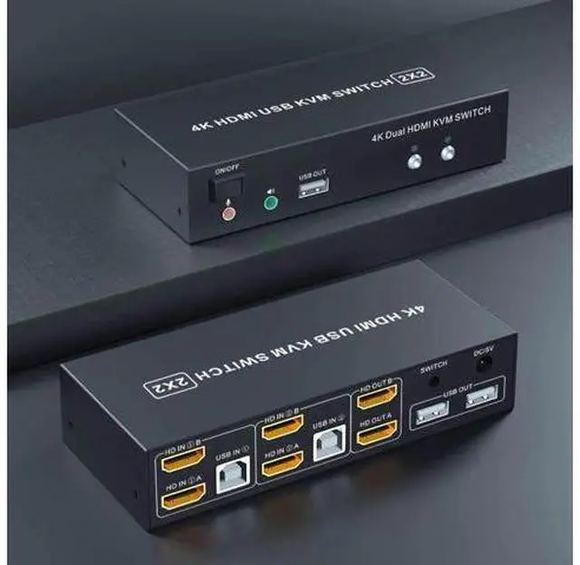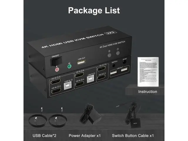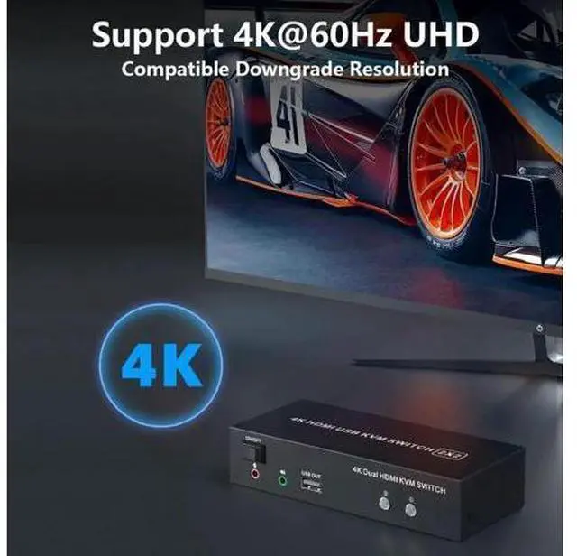 Computers Features: 1. Share one set of keyboard, mouse and dual monitors between 2 computers or laptops; 2. Dual monitors output support up to 4K@60Hz for extended or mirrored display; 3. With extra 3 USB 2.0 ports and independent Audio Microphone output. 4. No complicated installation is required, and non-professionals can easily operate it; 5. Cross support major operation systems including Windows, Linux, Mac and more; 6.