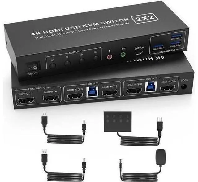 USB 3.0 Dual Monitor HDMI KVM Switch for 2 Computers You can easily have a dual monitor setup per system or a single monitor showing both systems (one on each monitor) Dual monitors output support up to 4K@60Hz for extended, mirrored or spliced display (Depends on your computer's graphics card) With EDID emulators in the extended display mode, keep PCs always have correct information, prevent displays setting change while switching inputs 2