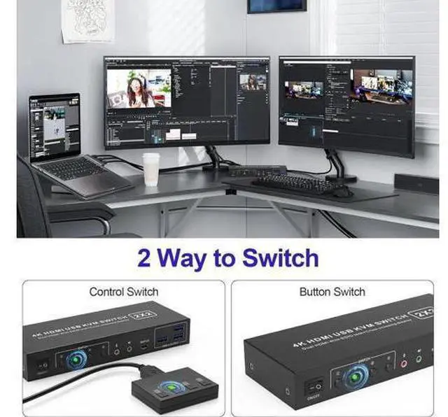 Dual Monitor KVM Switch: Ideal for access 2 PC with 2 monitors and 1 set of keyboard mouse. You can easily have a dual monitor setup per system or switch it to a single monitor system showing both systems.