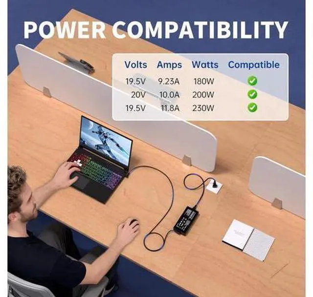 Laptop Charger: The 230w for charger is equipped with multiple protection measures to prevent short circuits overvoltage overcurrent and overheating in compliance with national safety standards ensuring rapid secure charging for your laptop and letting you swiftly resume work