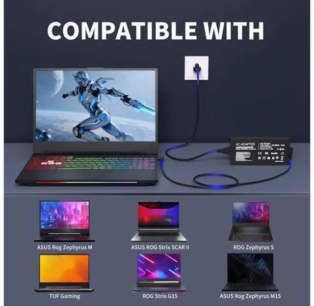 Charger Replacement: Compatible with Strix G15 G512 (2021) ROG Strix G15 G512LW G512LI G512LU G512LV G512LWS G512LW-XS78 G512LU-RS74 G512LWS-PH74 G512LU-XS74 G512LW-WS74 G513 G513IC G513QR G513QM G513RW G513RM G513IM gaming laptopSafety for