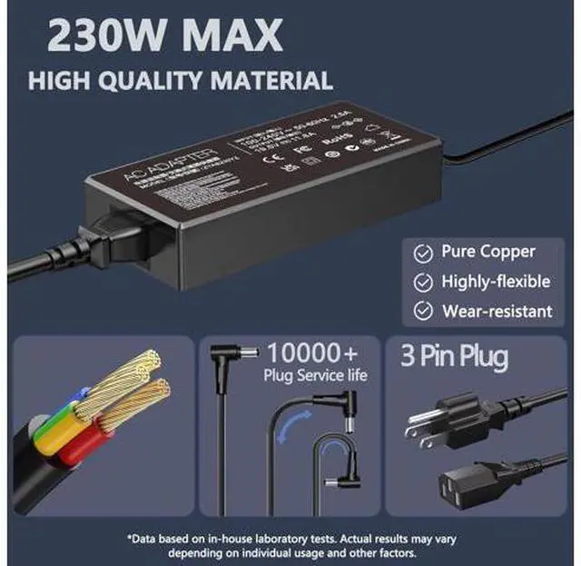Package Includes: 1 x 230W Charger for Laptop 1 X Power Cord230W for
