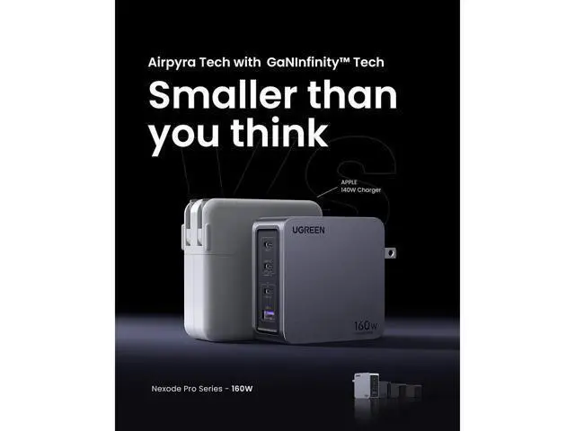 Let the Nexode Pro 160W 4-Port USB GaN Wall Charger from UGREEN revolutionize your charging experience with its powerful and versatile capabilities. Designed to cater to the needs of families and travelers with multiple devices, this charger is equipped with cutting-edge GaN technology, ensuring efficient and rapid charging for a wide range of electronics. The Nexode Pro features four distinct charging ports, making it an essential accessory for those with multiple laptops and gadgets. The USB-C1 port delivers an impressive output of up to 140W, perfect for powering high-end notebooks and ensuring they stay charged even during intensive use.