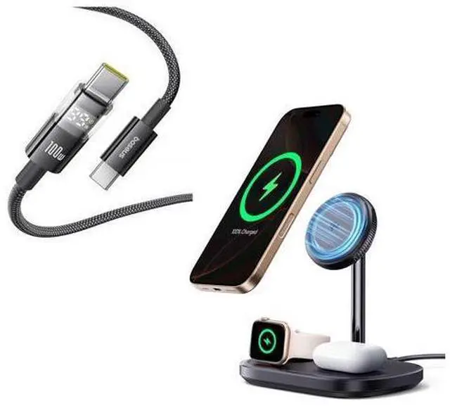 Package Content: 1*Baseus USB C Cable 100W, 1*Baseus Qi2 Certified 15W Wireless Charger