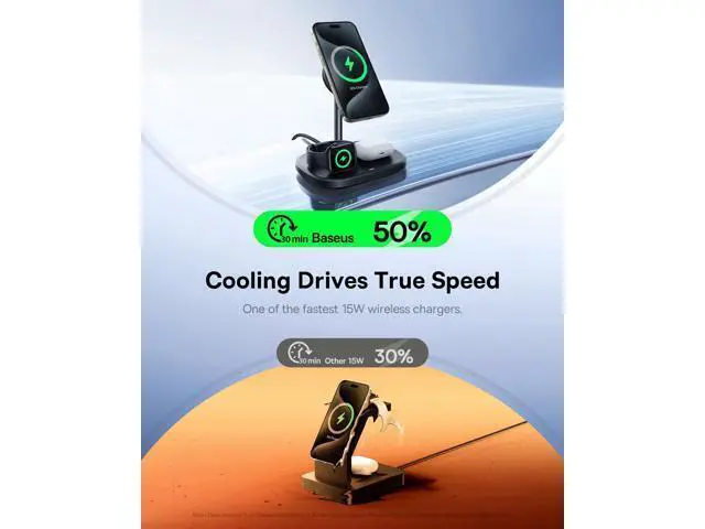 Qi2 15W Wireless Charging: One of the fastest 15W wireless chargers due to the Baseus exclusive cooling tech. Charge an iPhone 15 Pro to 50% in just 30 minutes, offers unbeatable fast charging speed and performance, ideal for your iPhone and MagSafe-compatible devices.