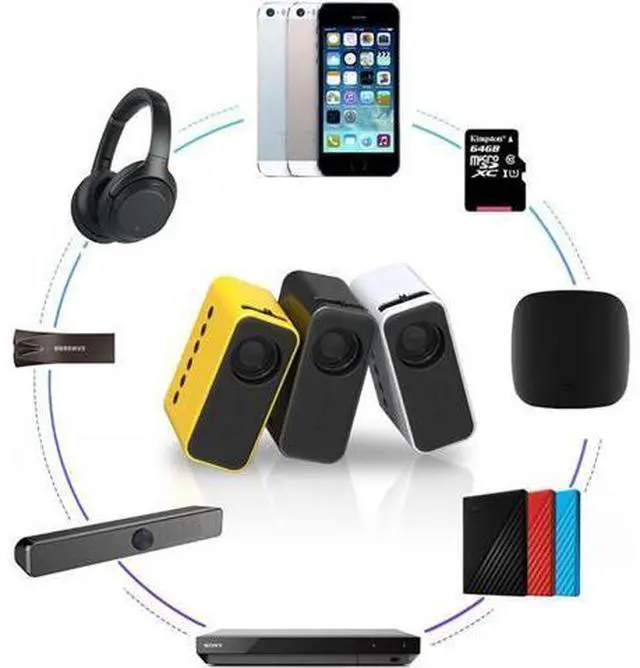 Small and light: The mini projector has a unique and elegant design with a size of 110*90*50mm. It is small and light. You can put it in your bag and take it out without any difficulty.