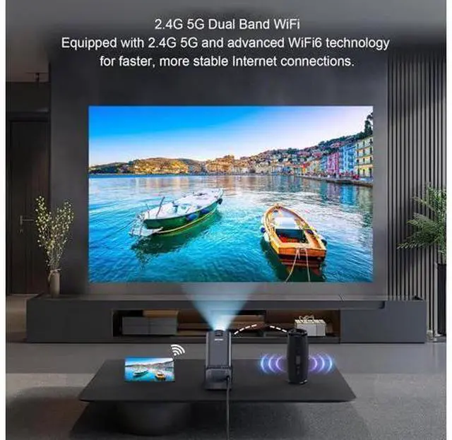 [Blazing Fast Connectivity] Equipped with 2.4 g, 5g, and 6 technology, this projector ensures a stable and speedy internet connection. whether you're gaming online or streaming videos, you'll experience seamless performance without any lag. [Crystal-clear Projection] Bid farewell to distorted images thanks to the automatic keystone correction technology of this projector.