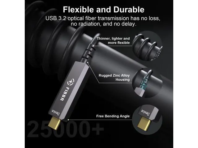 10Gbps High Speed Data Transfer: Experience breathtaking speeds with fibbr fiber optic USB A to USB C cable, featuring 10Gbps USB 3.1 Gen 2 technology,and ensuring zero data loss even over long distances up to 100ft. Perfect for high-speed tasks and heavy data use!