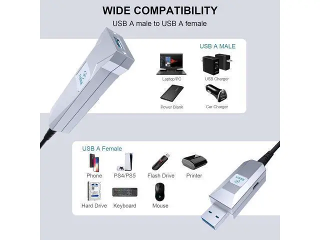 EXTENSION CABLE FOR ENGINEERING: This extra long fiber optic USB 3.0 extension cable supports data transfer rates up to 5Gbps - 10 times faster than USB 2.0 cables. You can extend the device to a more convenient location to connect another USB device, plug and play, no drivers required.