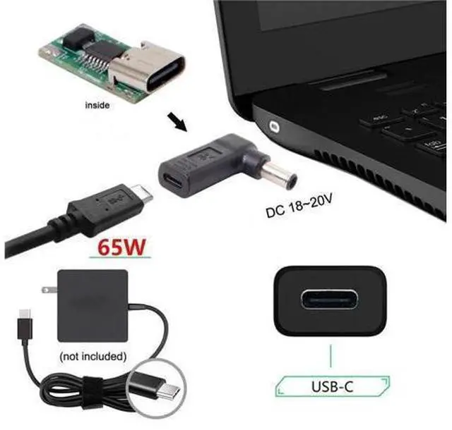 Output: DC 18V-20V (not support 5V). Use it with the 65W Type-C Charger to conveniently charge your Laptop with DC 18V-20V port from a wall outlet.