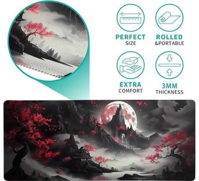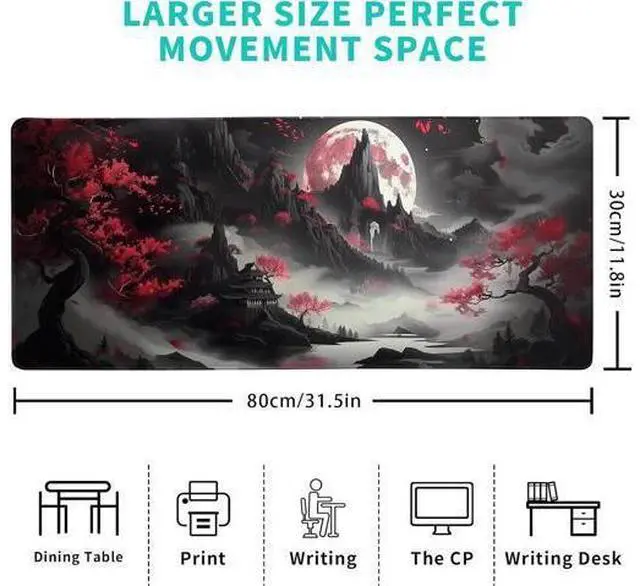 Extended Size: The Japanese Mouse Pad Is Large Enough 11.8 ''X 31.5 '' ( 800mm X 300mm X 3mm) Will Fit Your Desktop Perfectly And Provide Perfect Movement Space Offers Plenty Of Room For Gaming Or Office Works All While Protecting Your Desk Applies To All Types Of Mouse Keyboards And More.