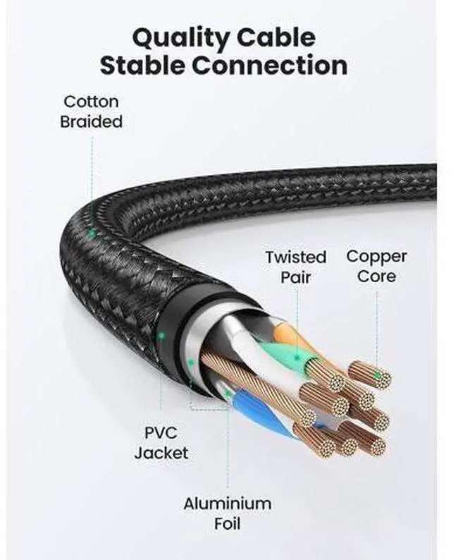 Excellent Anti-interference: UGREEN Cat 8 internet cables are designed with 4 shielded foiled twisted pairs (F/FTP) and an aluminum foil shielding layer. This design can greatly reduce interference and crosstalk from adjacent pairs and other cables, making network speed faster and more stable.