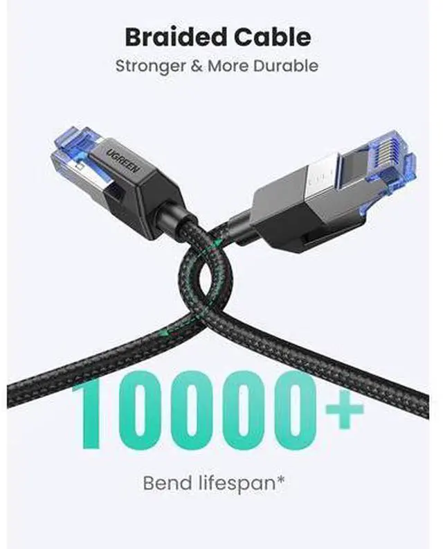 Durable Braided Design: UGREEN Cat 8 ethernet cable wrapped with quality cotton braided cord, which makes the LAN cable stronger and more durable. The test proves that this internet cable can be bent at least 10000 times without broken, very suitable for long-term use.