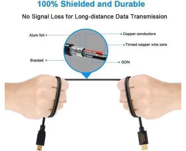 Superior Cable Quality: Corrosion-resistant bare copper conductors, gold plated connector and foil & braid shielding provide the mini usb to usb cord maximum conductivity and minimize data loss