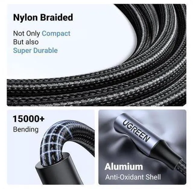 Design: No damages scratches bendings or tearings! UGREEN dongle for iPhone is made of Hi-Q aluminum alloy case and nylon-braided cable material built-in enameled copper and PVC jacket to ensure the stable sound transmissionEasy to