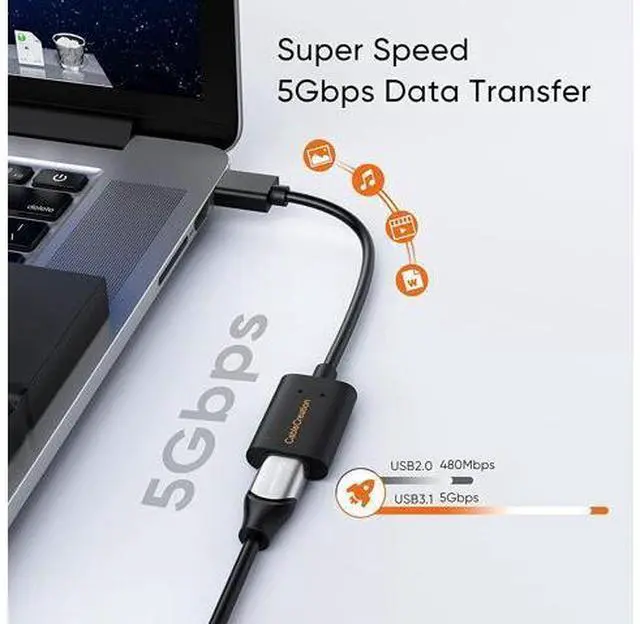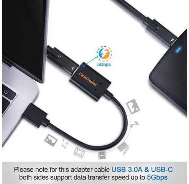 Super Speed: built in VL160 smart chipset, supports double-sided (USB 3.0 A & USB-C) data transfer speed up to 5Gbps, make sure to connecting the USB 3.0 port. USB 3.0 A Male is the Host side, connects to all USB 2.0 or USB 3.0 Laptop/PC (expect the New Type C Laptops/PC without USB 2.0 / 3.0 Port ).