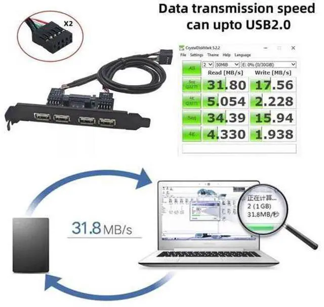 1) With this cable, you can directly connector motherboard 9pin socket, converted to USB 2.0 socket. Cable length 30cm, With 12cm length standard PCI-E bracket.