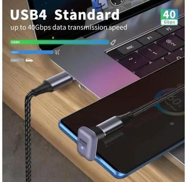 USB C Adapter: with 8K Video Display. support 4K@60Hz even 8K video output. You can enjoy charging audio video and transfer data on the trip at home and in the office. USB C Adapter 40Gbpsmeets the USB 4 standard that is up to 40Gbps data transmission speed. Transfers movies music and more in just seconds. Please noticed that the data transmission speed? also depends on the USB devices and the cable support or not. USB C U shape